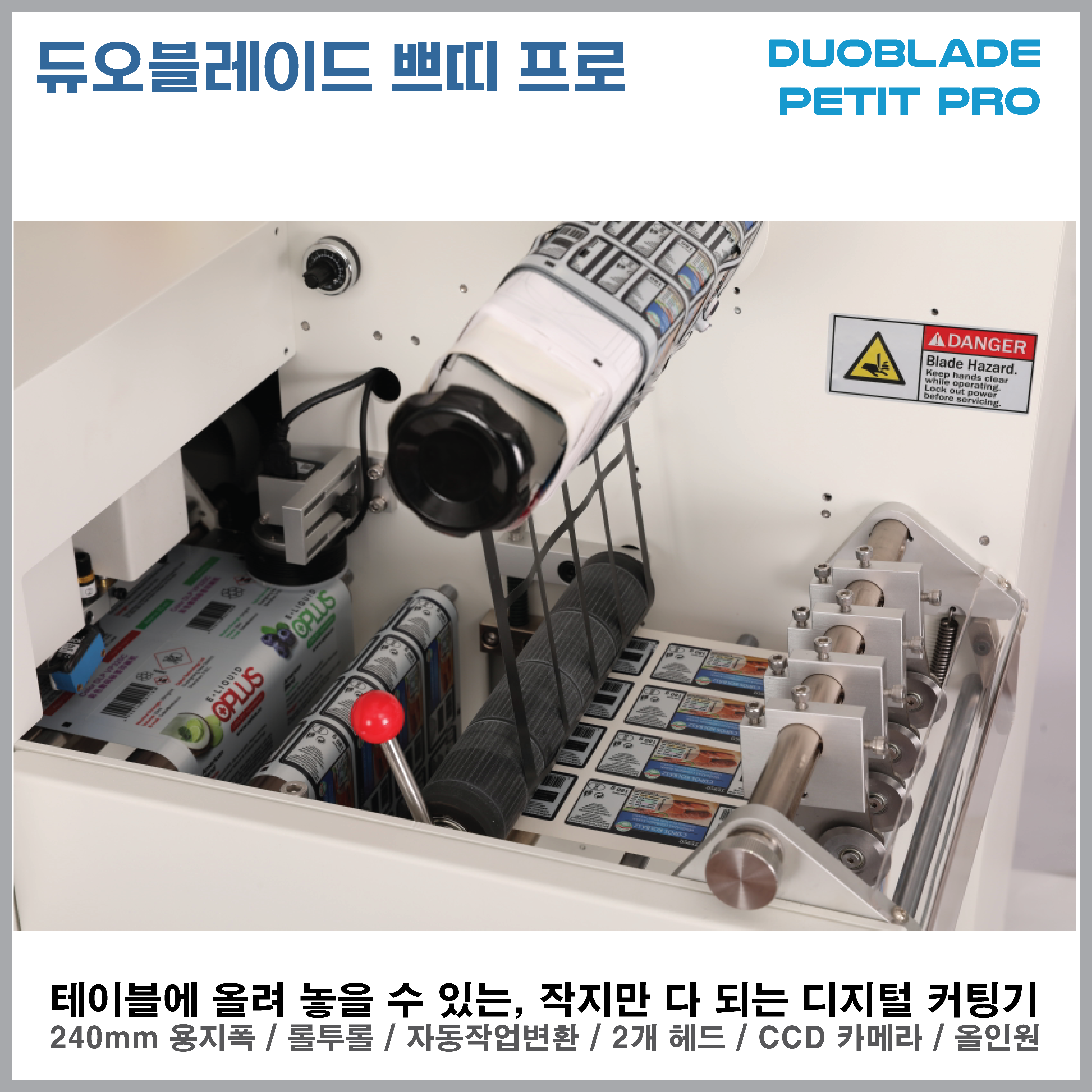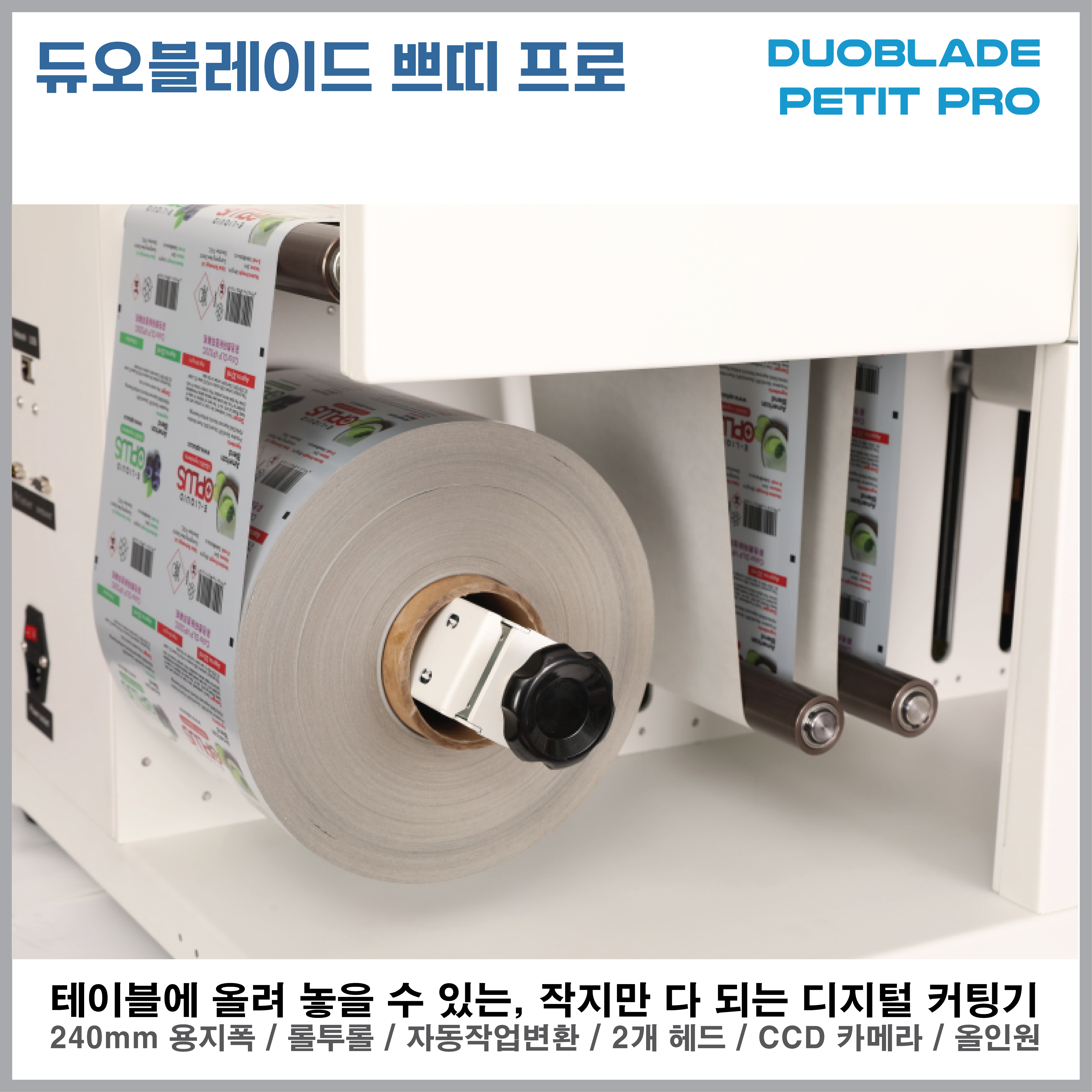 이제 ‘외주’가 아니라, 사내에서 직접 라벨과 스티커를 만들며 브랜드 스피드와 창의력을 높이세요 – 답은 듀오블레이드 쁘띠 프로(DUOBLADE PETIT PRO)입니다.